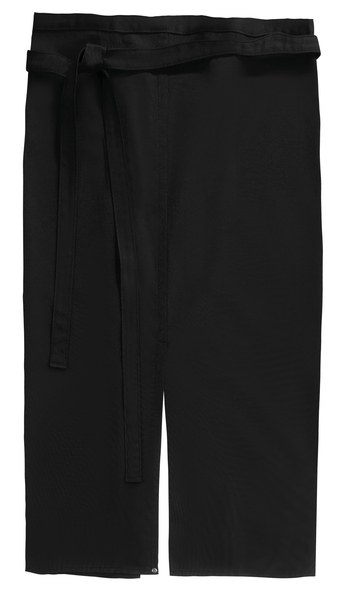This stylish waist apron is split on the front and it will give you great freedom of movement thanks to its knee length .