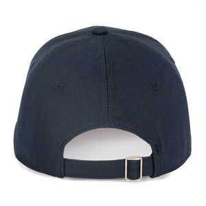 6-panel cap with adjustable self-locking metal buckle.