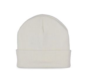 Knitted turn-up beanie made from acrylic and recycled polyester.