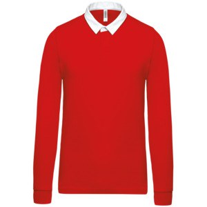 Kariban K213 - Red / White - Kariban Men's Long Sleeve Rugby Polo Shirt