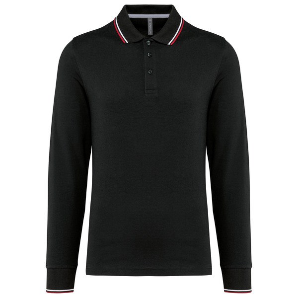 Kariban K280 - Black / Red / White - Men’s long-sleeved piqué knit polo shirt