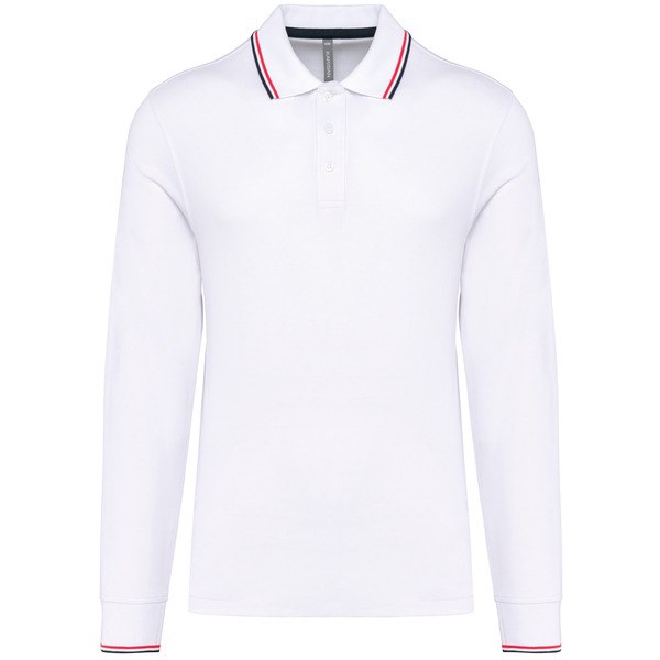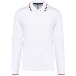 Kariban K280 - White / Navy / Red - Men’s long-sleeved piqué knit polo shirt