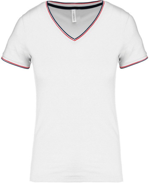 Kariban K394 - White / Navy / Red - Ladies’ piqué knit V-neck T-shirt