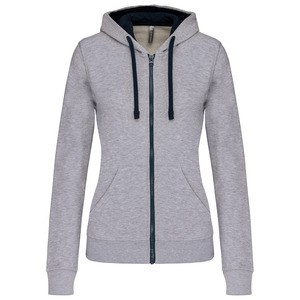 Kariban K467 - Oxford Grey / Navy - Ladies’ contrast hooded full zip sweatshirt