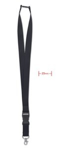 The strap is 25mm wide, providing a larger surface area than standard lanyards.