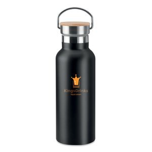 Pack of 100 GiftRetail MO9431 - Black - HELSINKI 500ml Bamboo Lid Insulated Flask