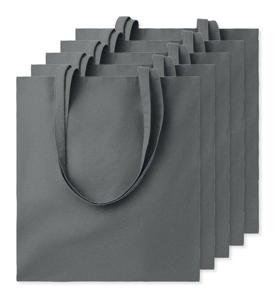 Pack of 5 GiftRetail MO9268 - Dark Grey - COTTONEL COLOUR Eco-Friendly 140gsm Cotton Shopping Tote Bag
