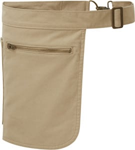 Rather modern , it comes with a jeans -style pocket measuring 20cm H x 18.5cm L and a zipped pocket measuring 16 x 16 cm.
