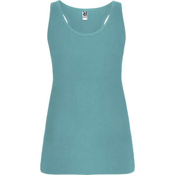 Roly CA6535 - Dusty Blue - BRENDA Slim-fit tank top with ribbed armholes and loose and rolled ribbed collar