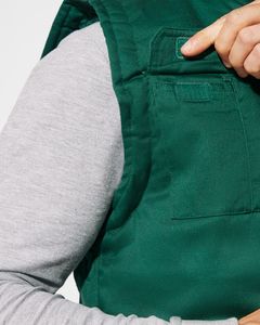 Shell: 80% polyester / 20% cotton, 200 gsm. Lining: 100% quilted polyester, 170 gsm.