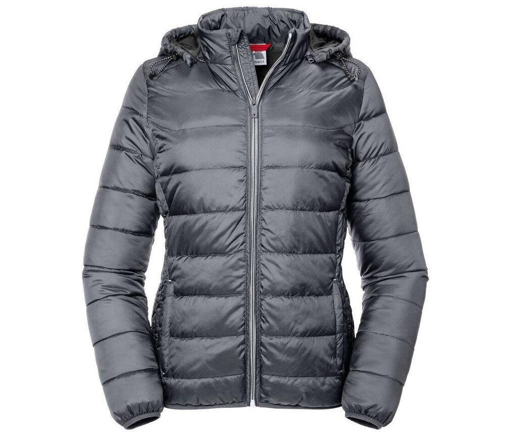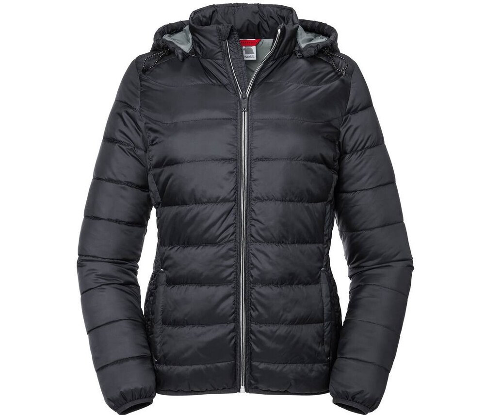 The Russell brand RU440F down jacket is a women's garment that combines comfort , warmth and aesthetics . It is characterized by a puffy design . This design results in a stand -up collar with chin guard and interior storm flap , as well as 2 side pockets and an interior zip pocket . The model also has a removable and adjustable hood in 3 parts to cover your head in bad weather. Compared to other warm garments, it is lighter , it is made of a high performance DWR fabric treated with Aquapel by Nanotex. It is guaranteed without fluorine or PFC . In addition, its effective eco-responsible padding from Dupont Sorona ensures unequivocal comfort and warmth . This women's down jacket also likes contrasting zippers , lining and details, as well as its elastic cord at the sleeves and hem . It is available in several sizes from XS to 3XL .