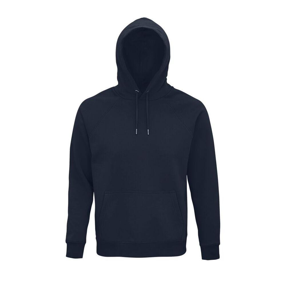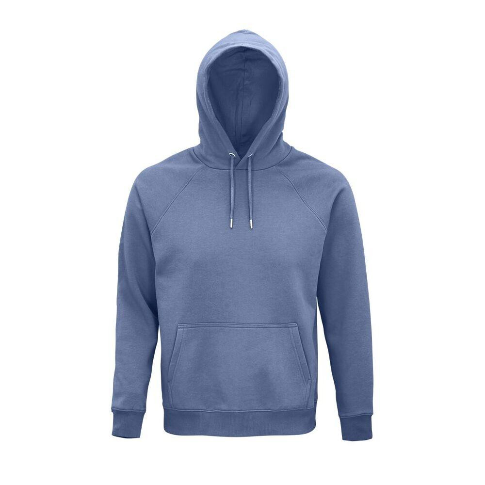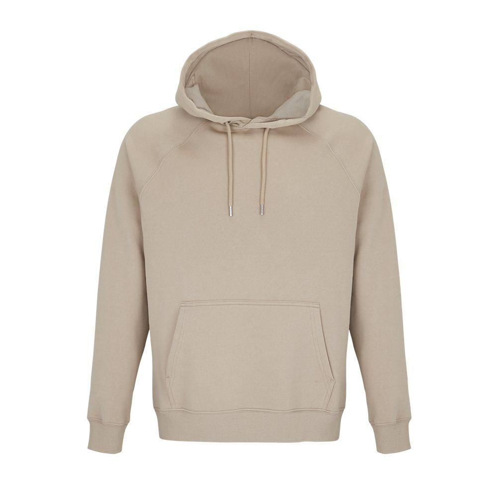 Keep up to date with current clothing trends and adopt this Unisex Hooded Sweatshirt 03568 by Sol's . It will certainly be your favorite garment during mild seasons, it provides a trendy and urban style to your look. You will be snuggled up warm with its brushed interior , it also has a jersey-lined hood . The sweatshirt is also adorned with a drawstring with eyelets , to effectively protect your hair against breezes and light drizzles. It is also made in a cotton fabric , the quality of which is proven by its fibers originating from organic farming . Mixed with recycled polyester , this natural material has a thick and resistant texture . The attributes of this sweatshirt are mixed, like its cut and sewn style and its raglan sleeves which also accentuate its comfortable side . The neck tape and the half-moon inside the collar underline the strength of the seams.