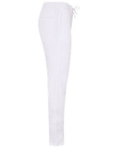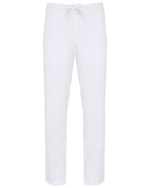Overstitched waistband with flat tone-on-tone drawstring in the main material and embroidered eyelet.