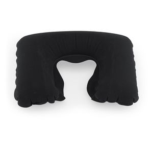 Inflatable travel pillow in a soft suede touch.