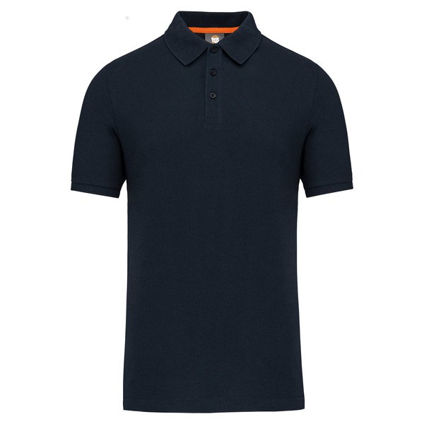 1x1 ribbed collar and cuffs with contrasting orange herringbone neck tape.