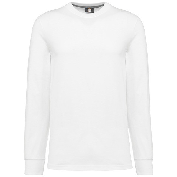 2x1 ribbed crew neckline with elastane and orange taped neck on the plain and marled colours and matching on the fluorescent colours.