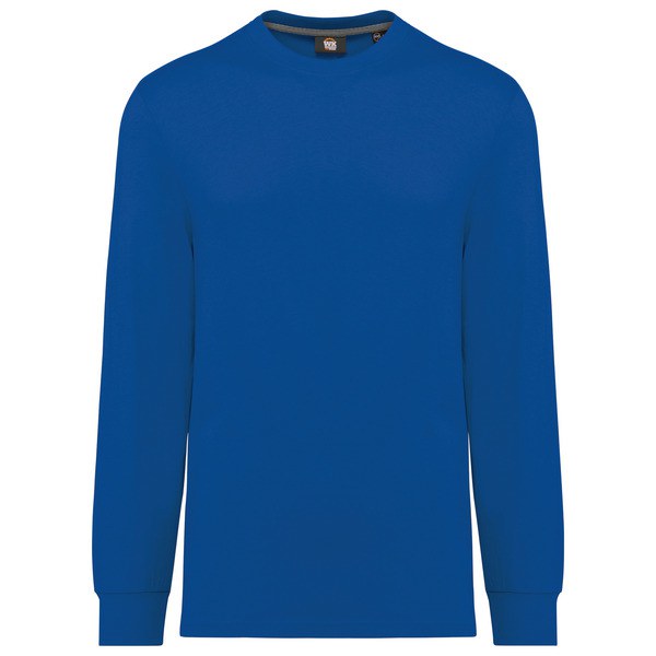 2x1 ribbed crew neckline with elastane and orange taped neck on the plain and marled colours and matching on the fluorescent colours.