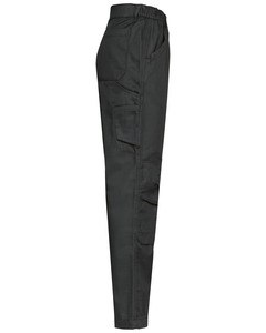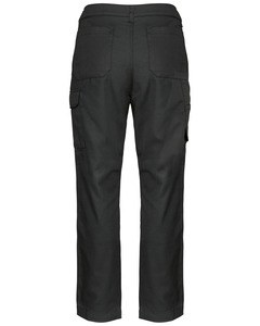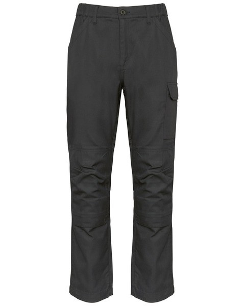 1 pocket with flaps and velcro fastening on the left when worn, 1 double open tool pocket on the right when worn, 2 back patch pockets, 2 knee pad pockets in matching colour with velcro and flap inside to support and adapt the knee pad.
